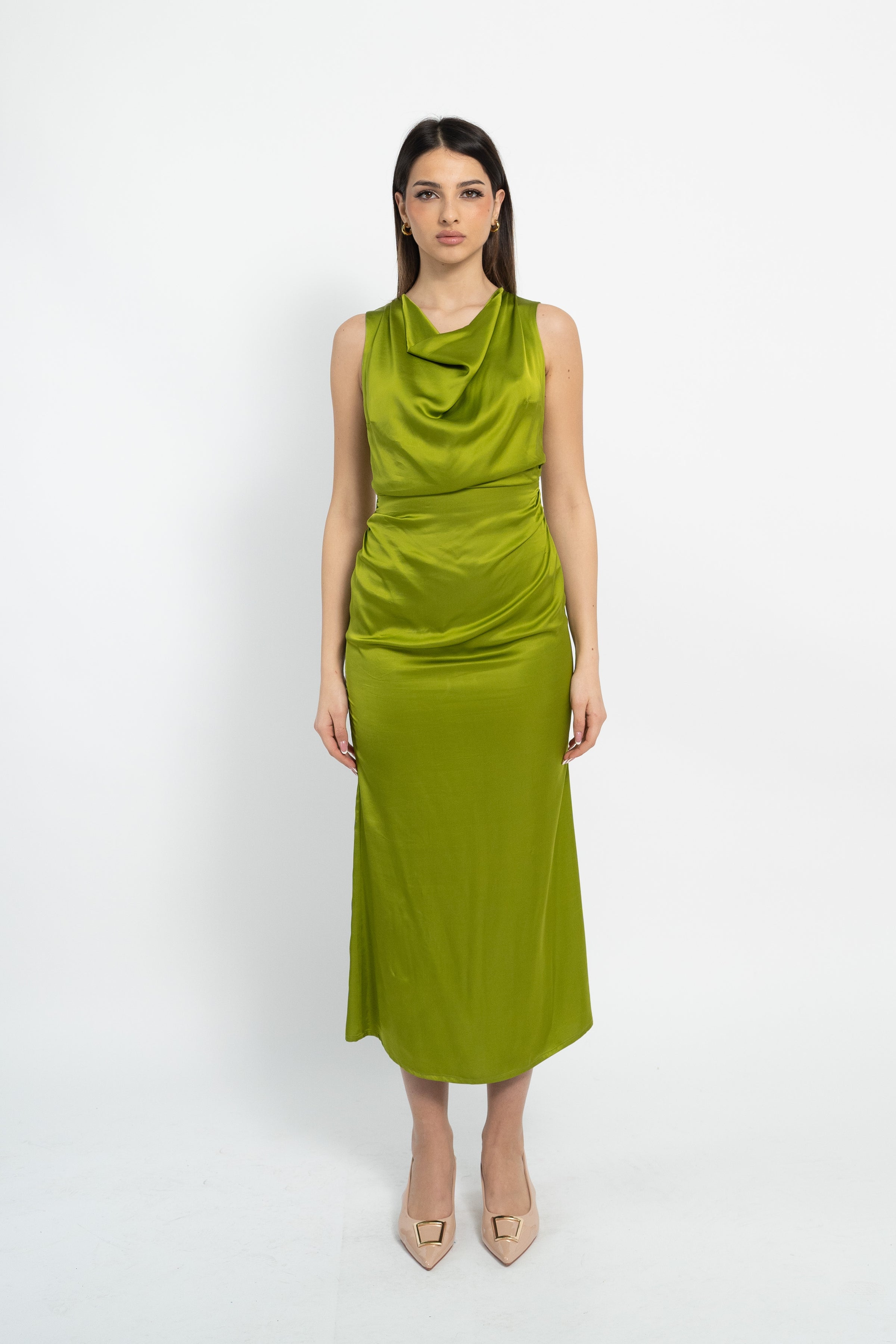 Abito lungo in raso di viscosa, con scollo