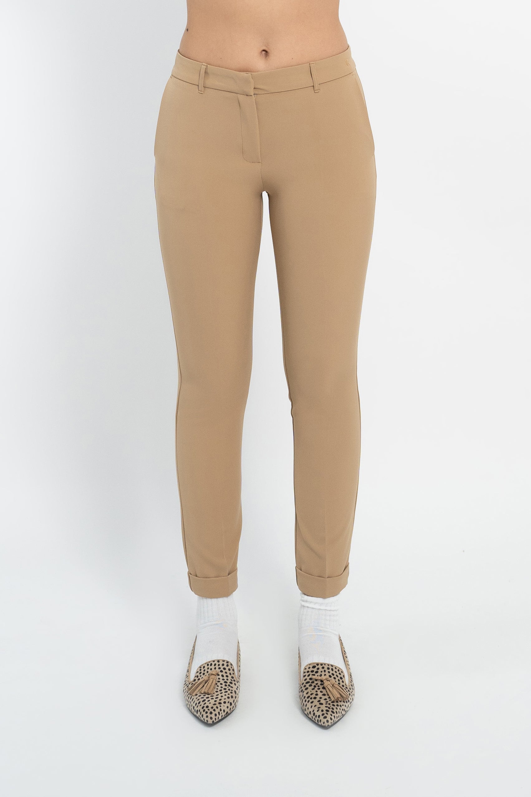 Pantalone a sigaretta in tessuto tecnico, vita regolare, risvolto e frisi sul dietro