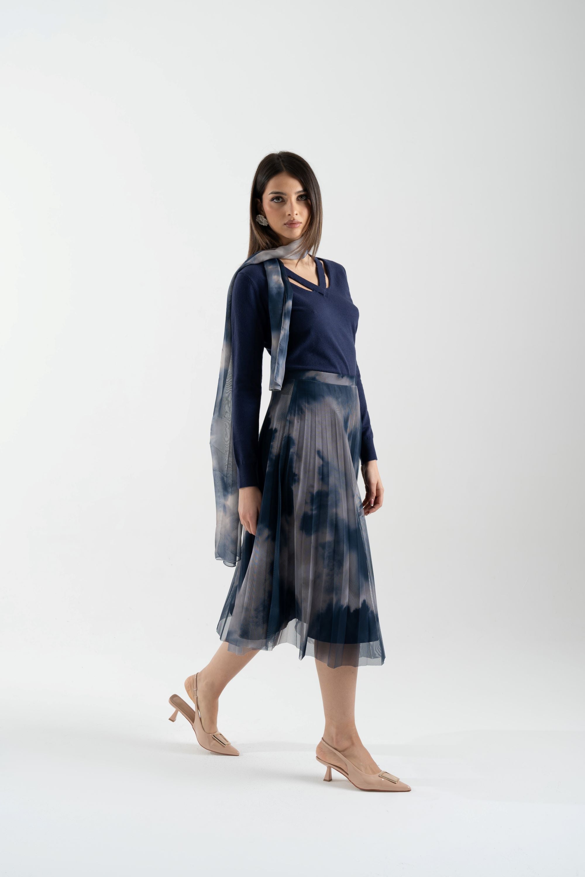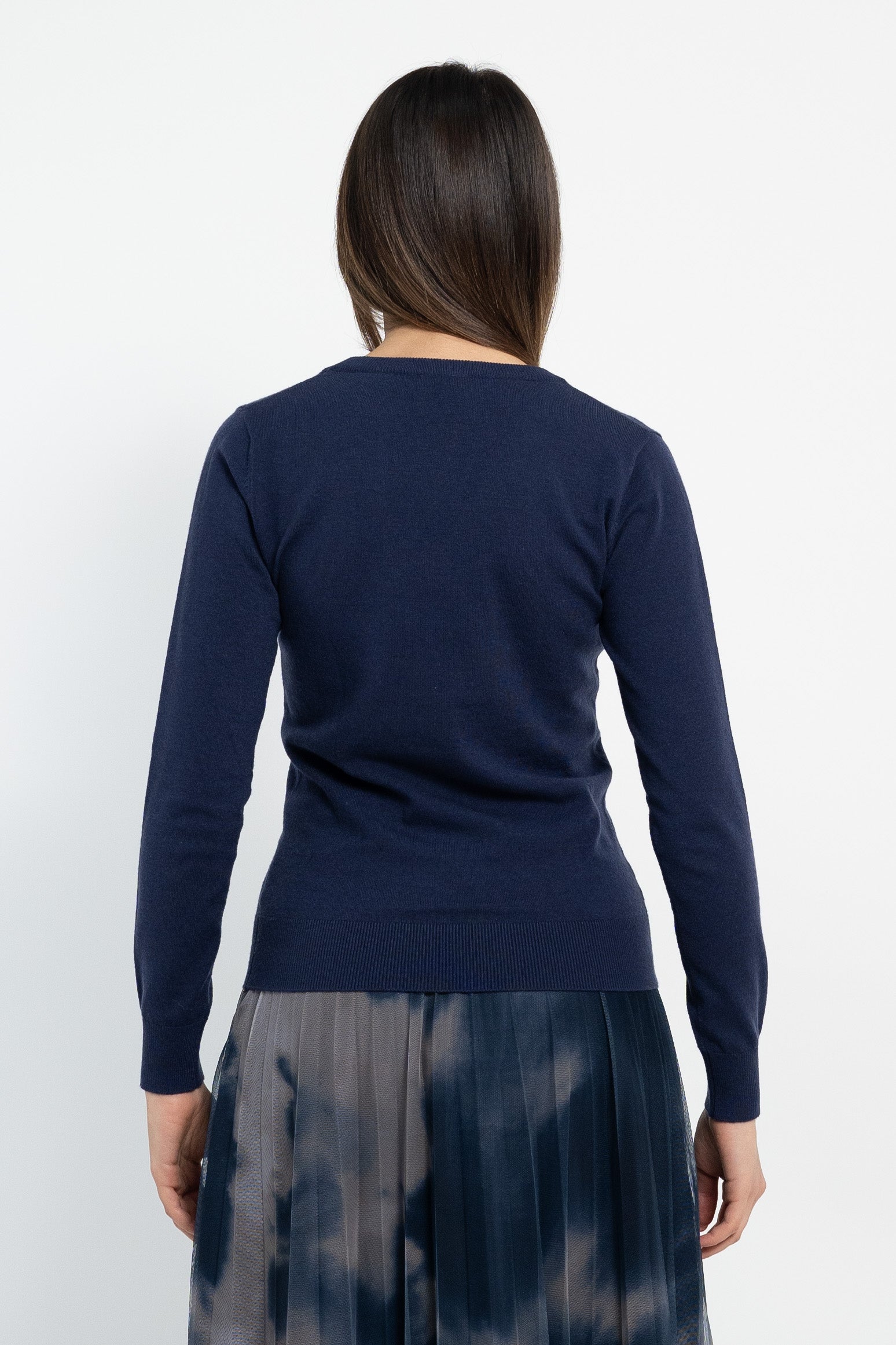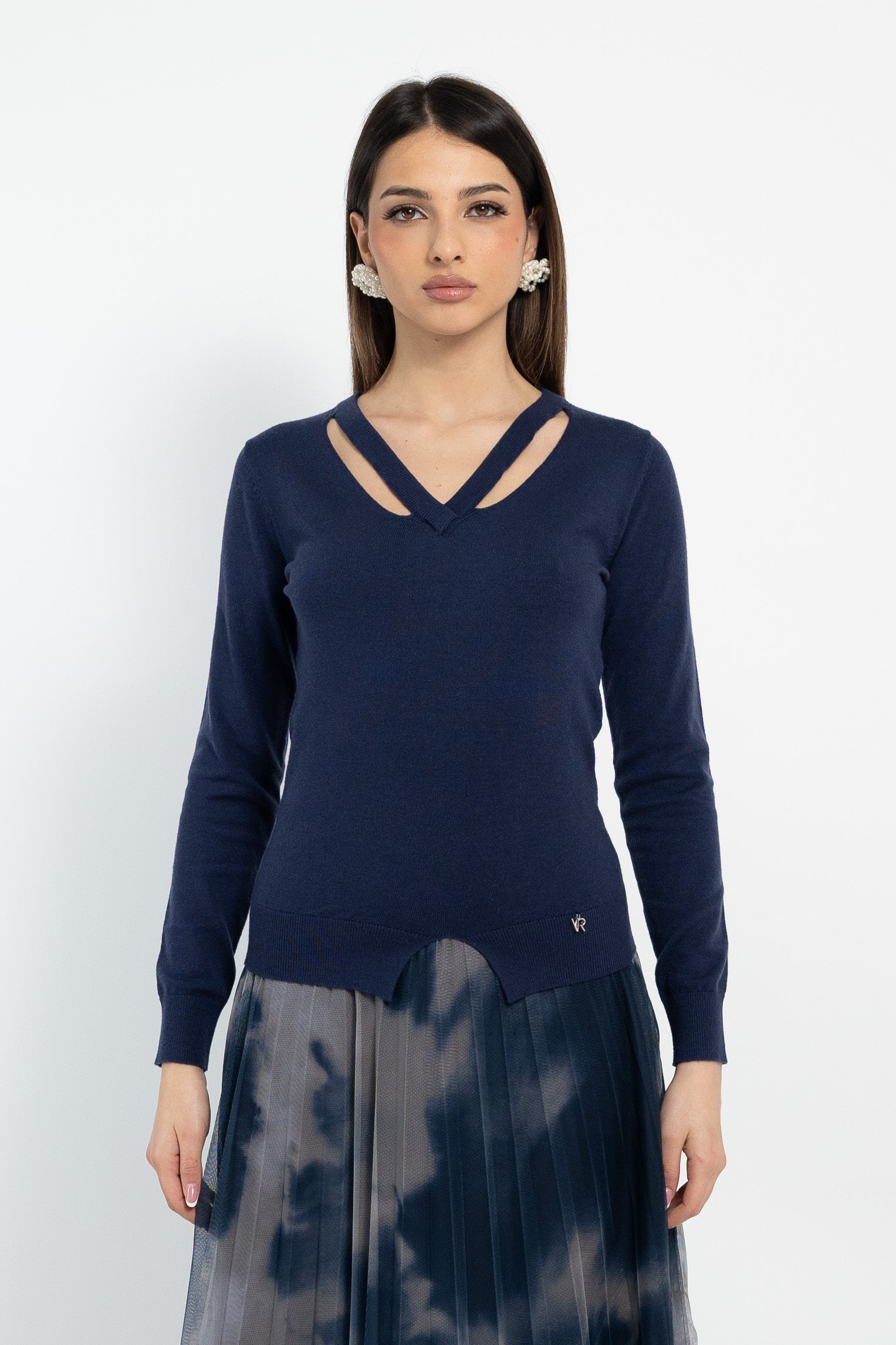 Maglioncino scollo a V, linea slim con aperture sul davanti.