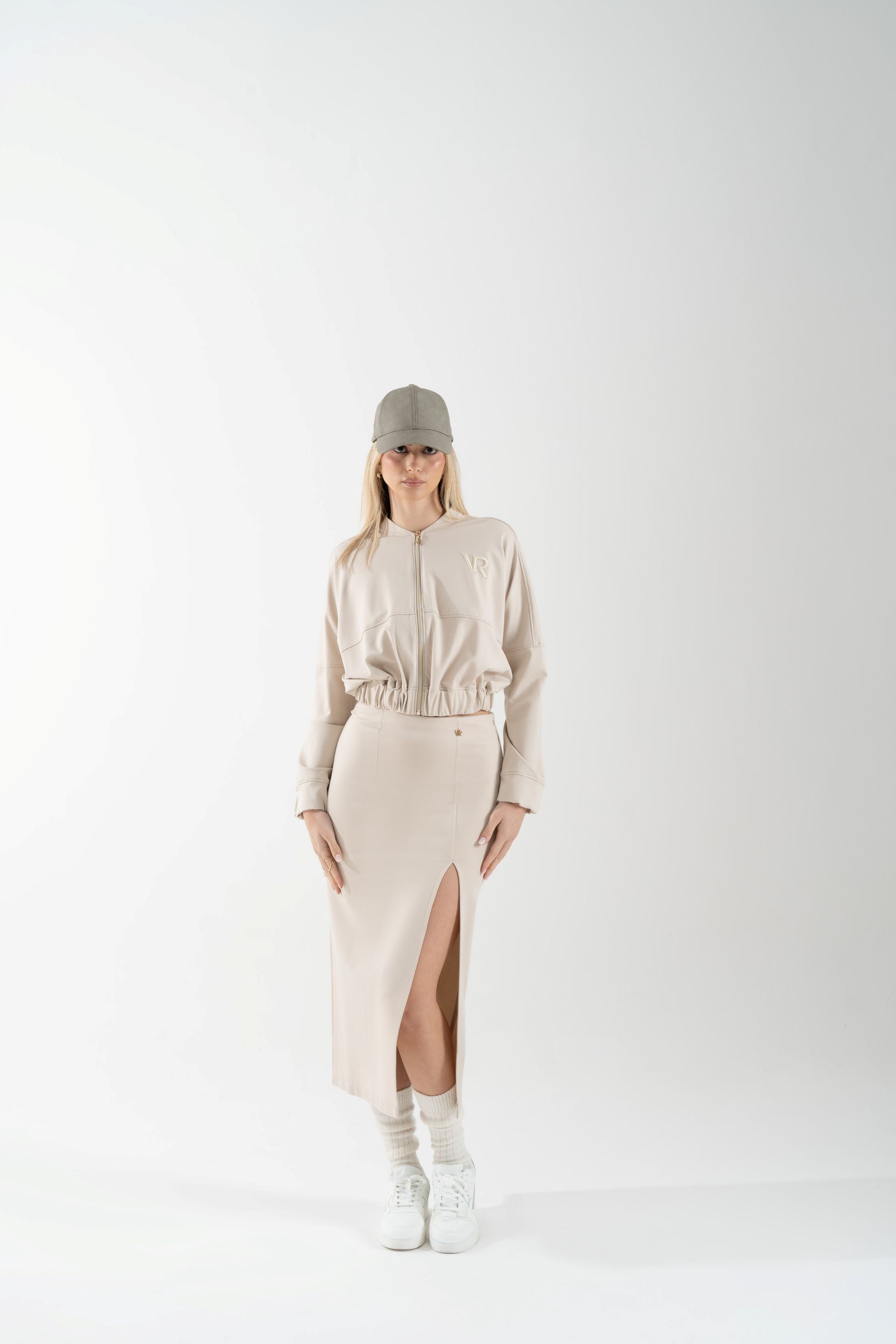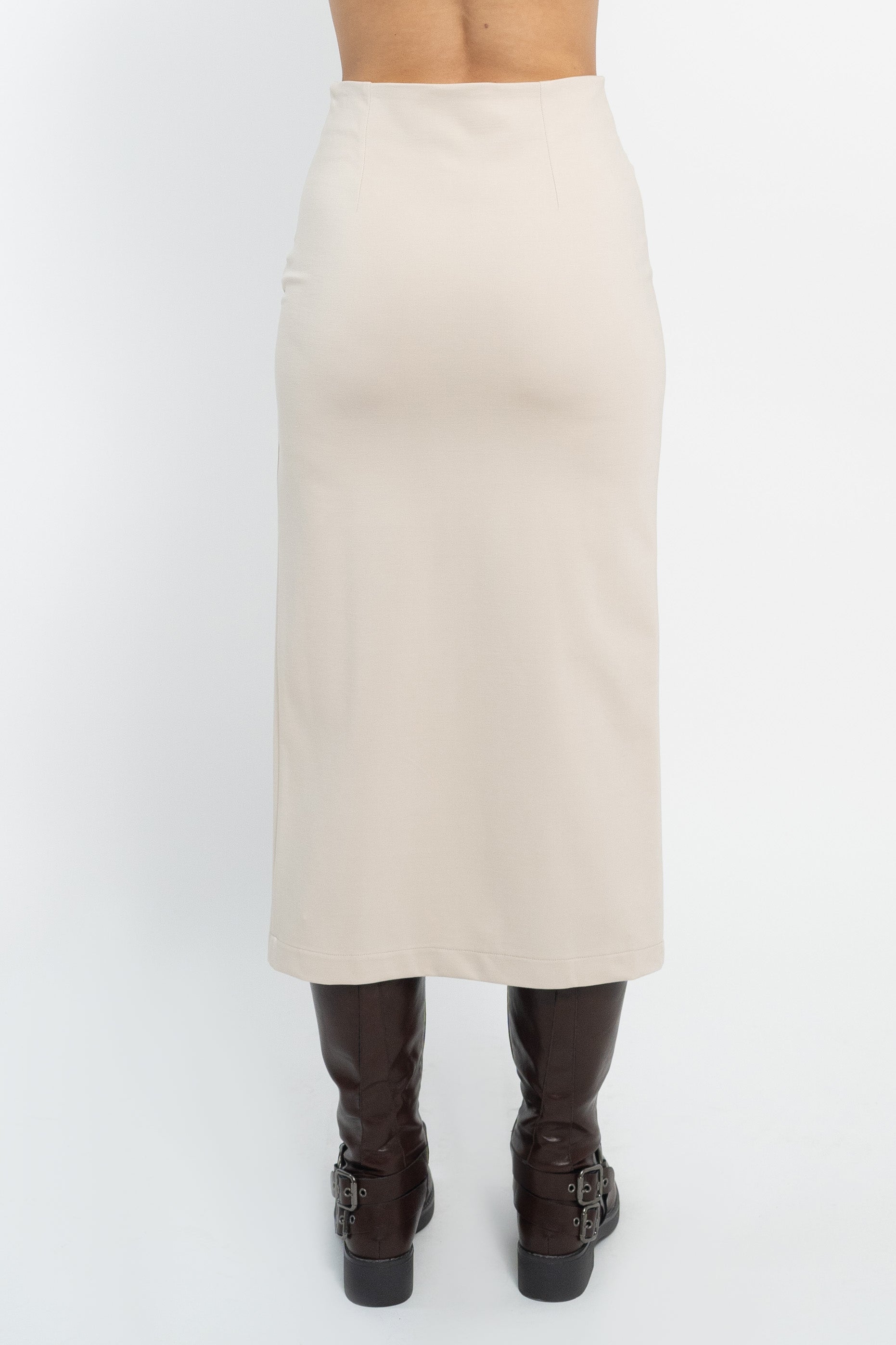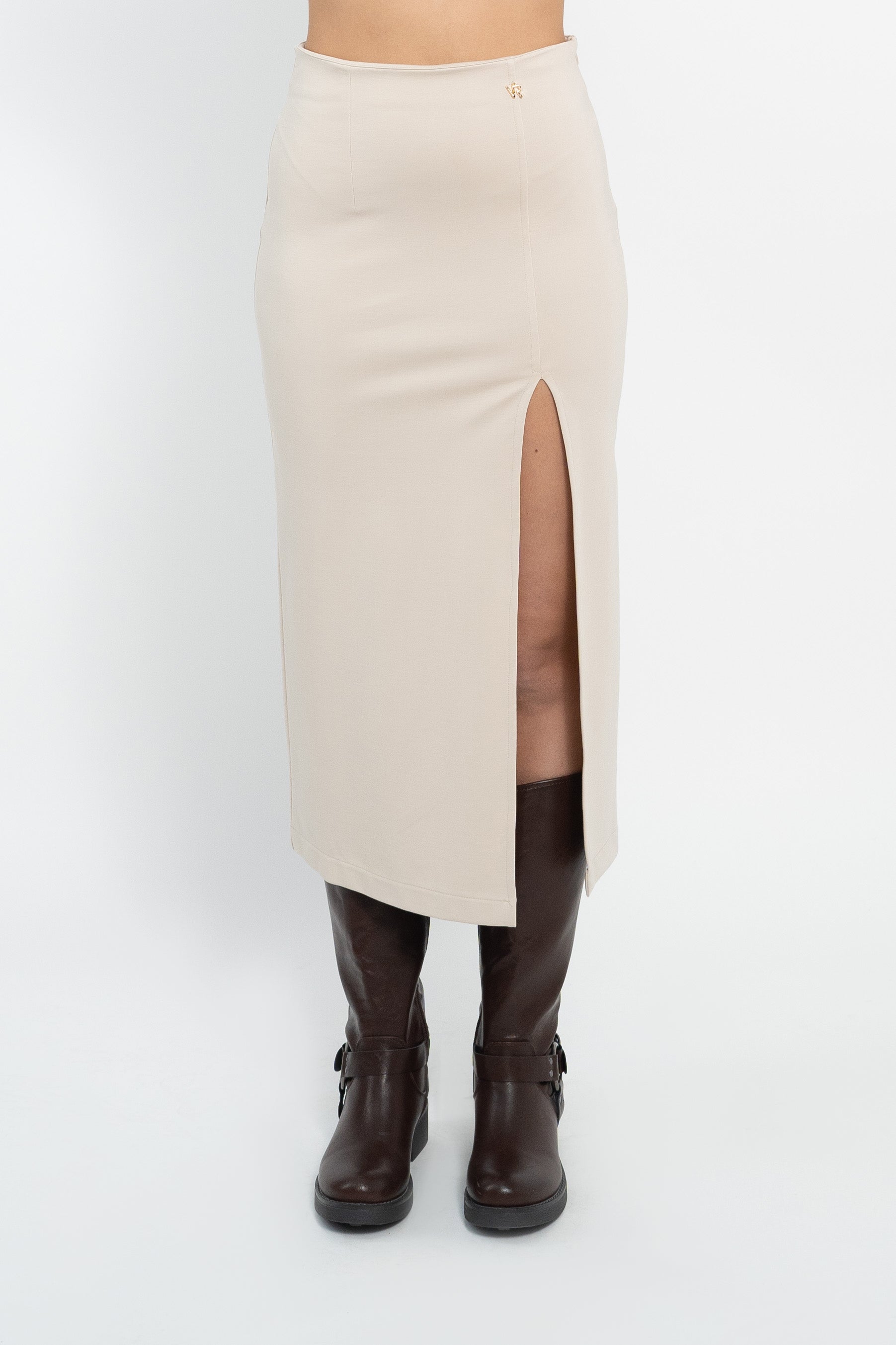 Gonna midi in punto milano con spacco sul davanti e zip laterale