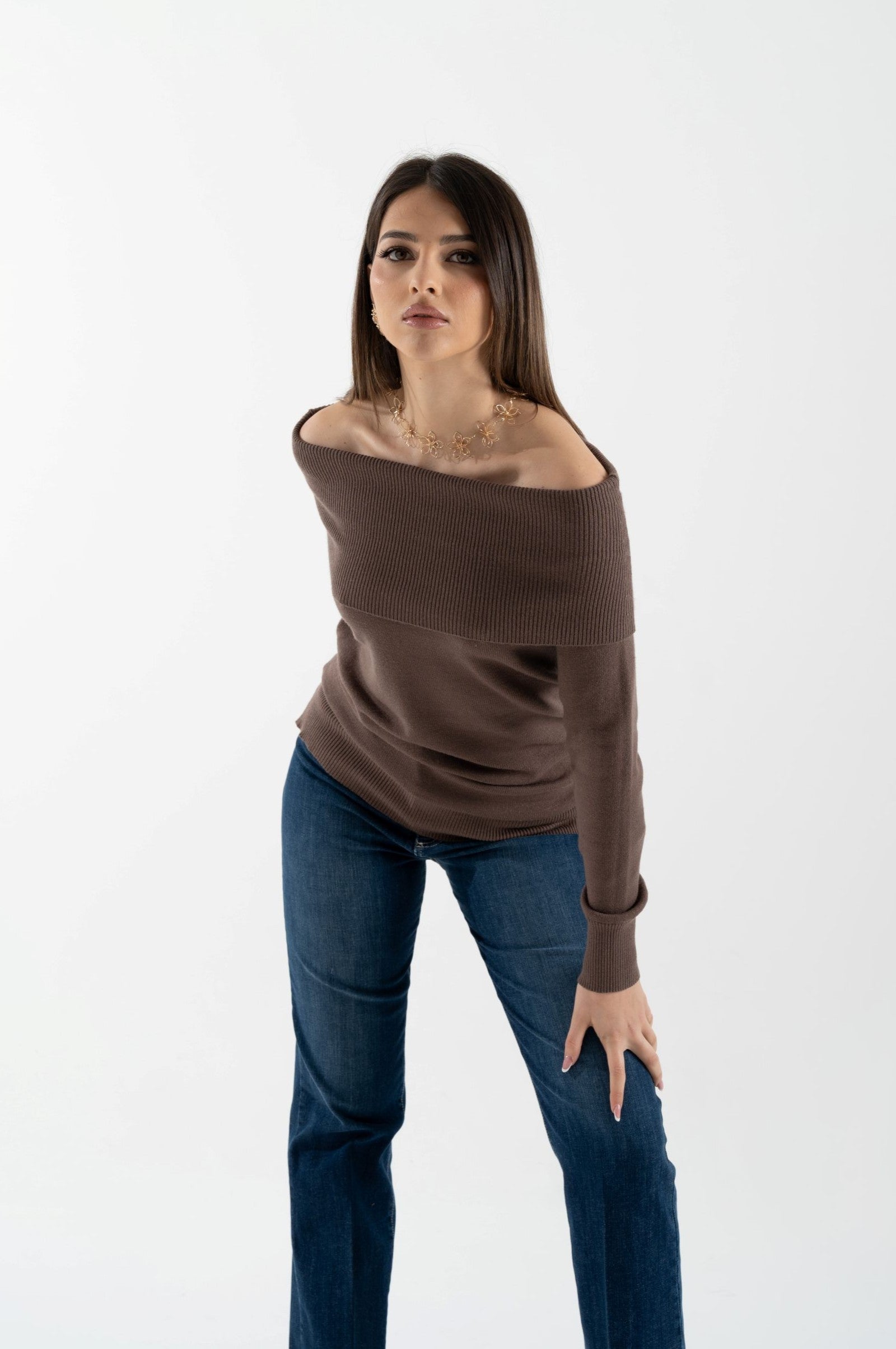 Maglia scollo bardot con fondo a sbuffo, manica lunga.