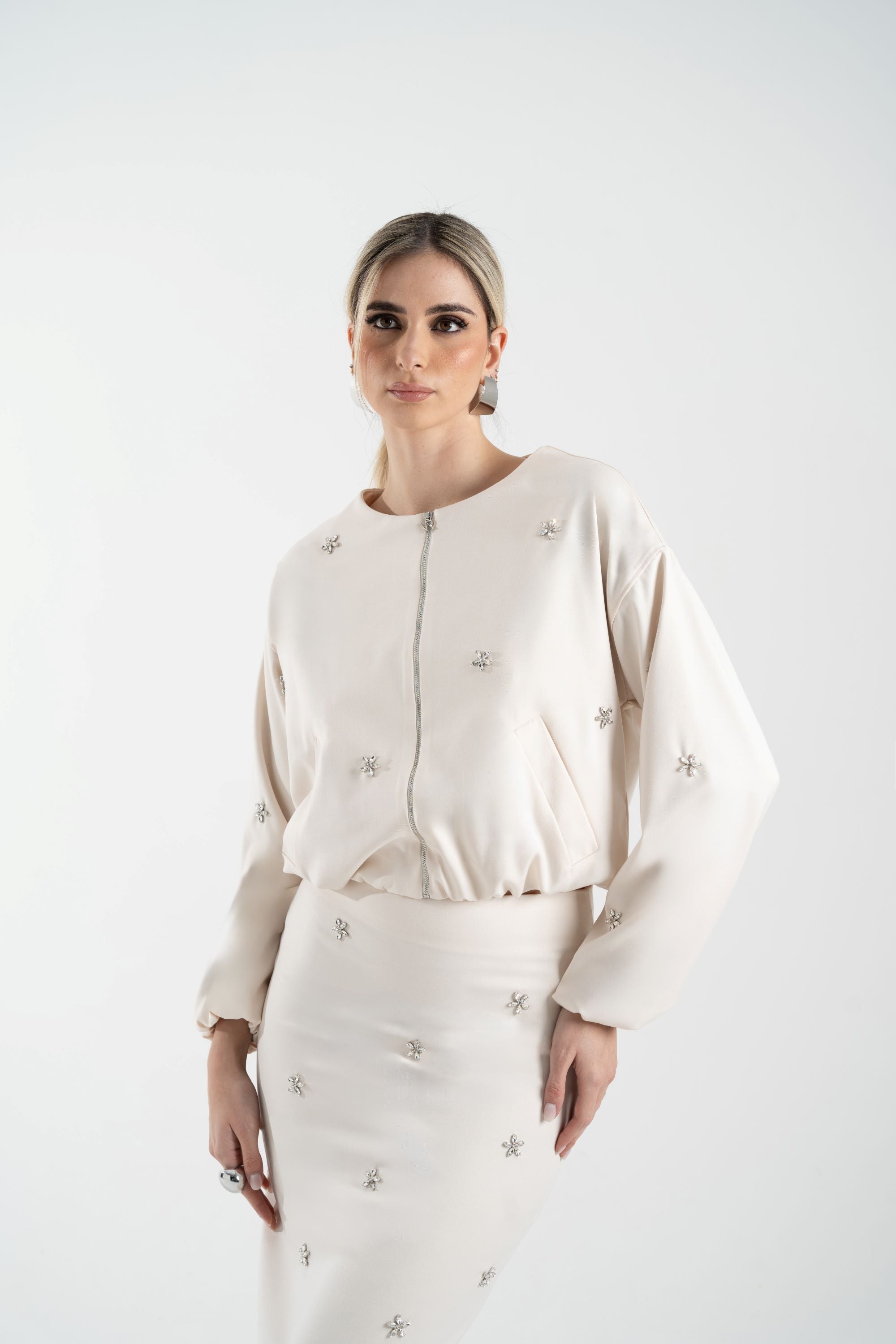 Gonna midi in flanella con applicazioni strass sul davanti, zip e spacco sul centro dietro.