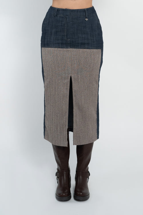 Gonna midi in jeans con inserti