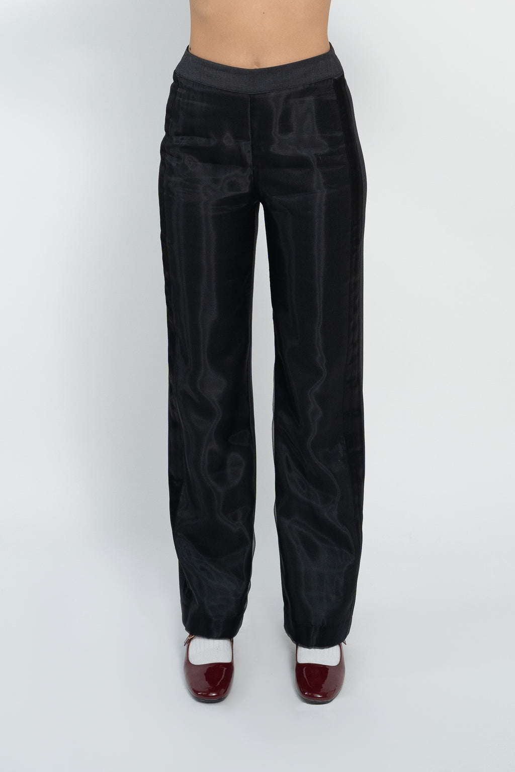 PANTALONE DRITTO IN CREPE CON BANDA IN RASO