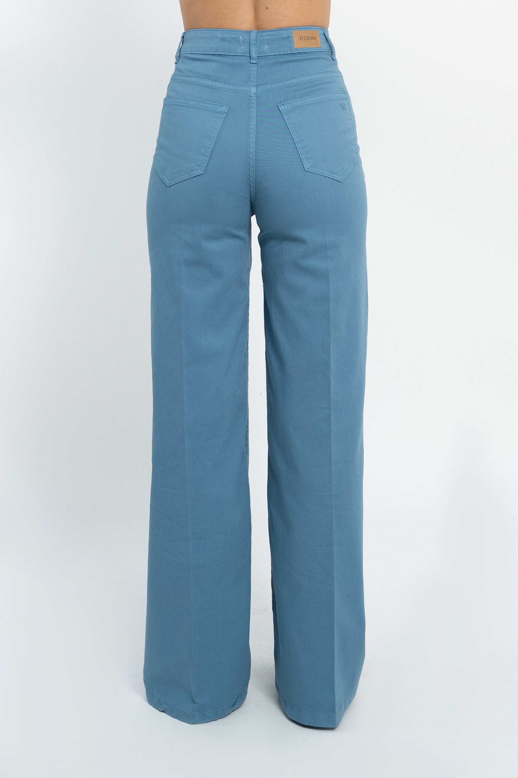 Pantalone in gabardina di cotone, cinque tasche, wide leg e salpetta sul dietro personalizzata VR.