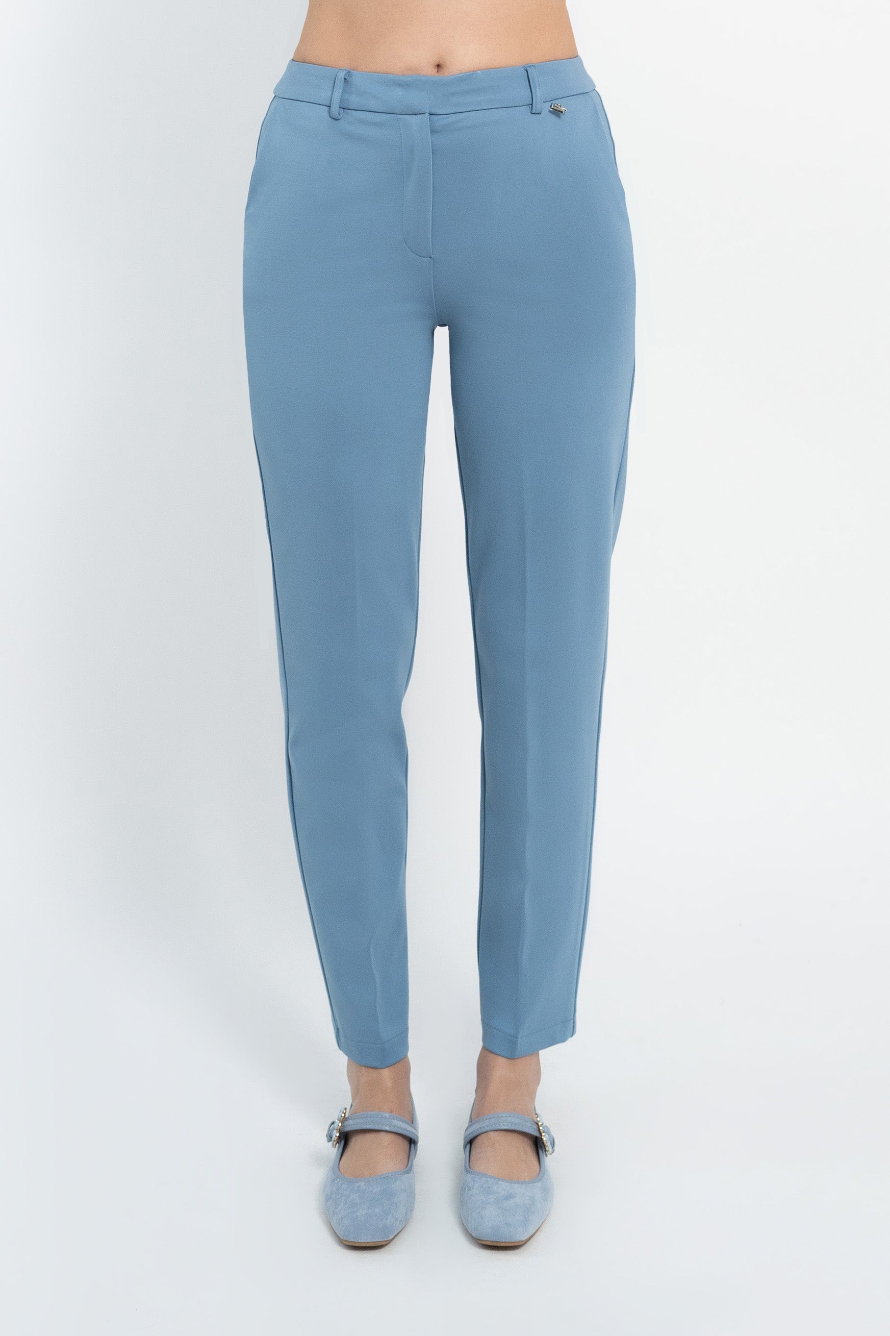 Pantalone linea sigaretta in punto milano, con cinturino strutturato, passanti, bottone